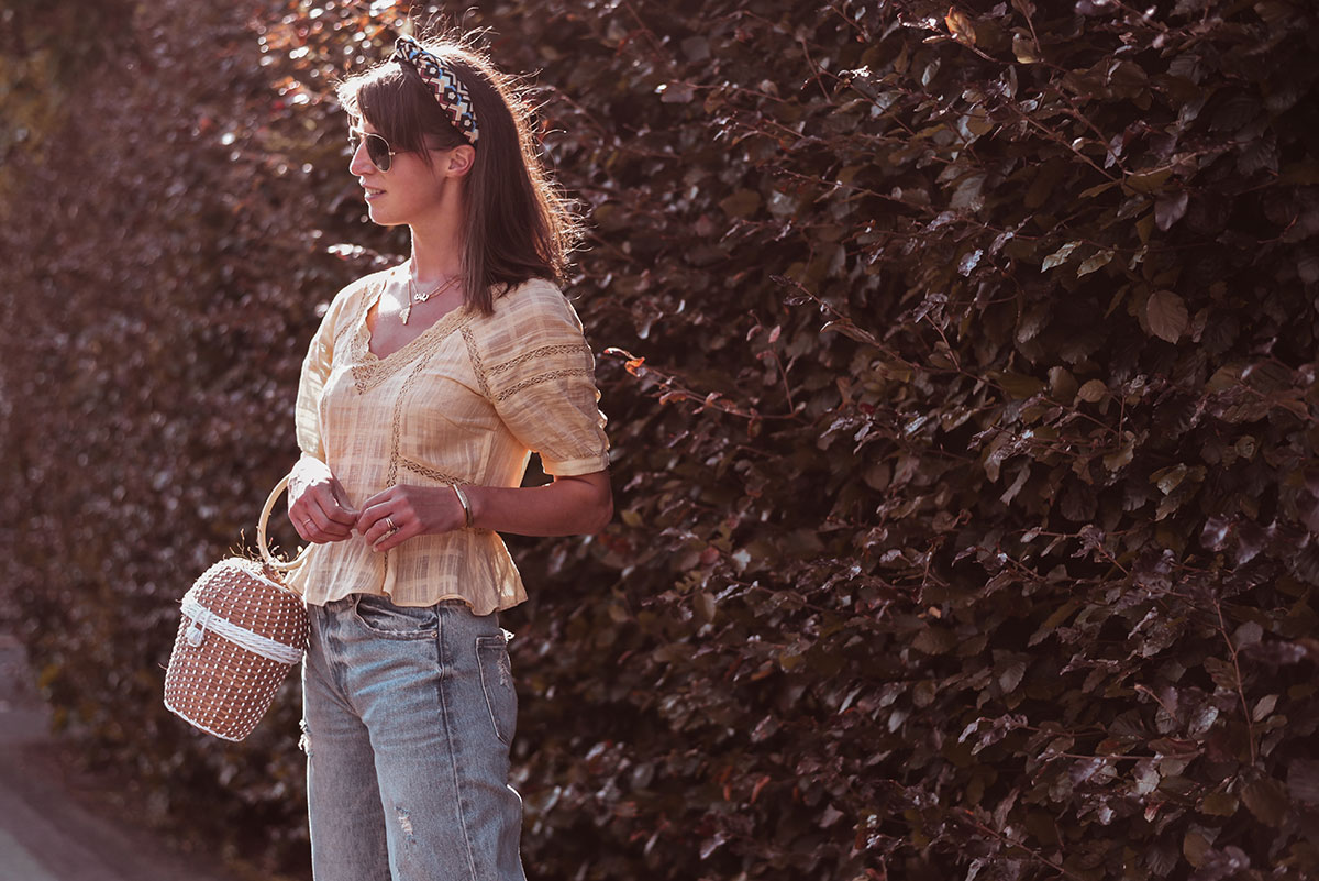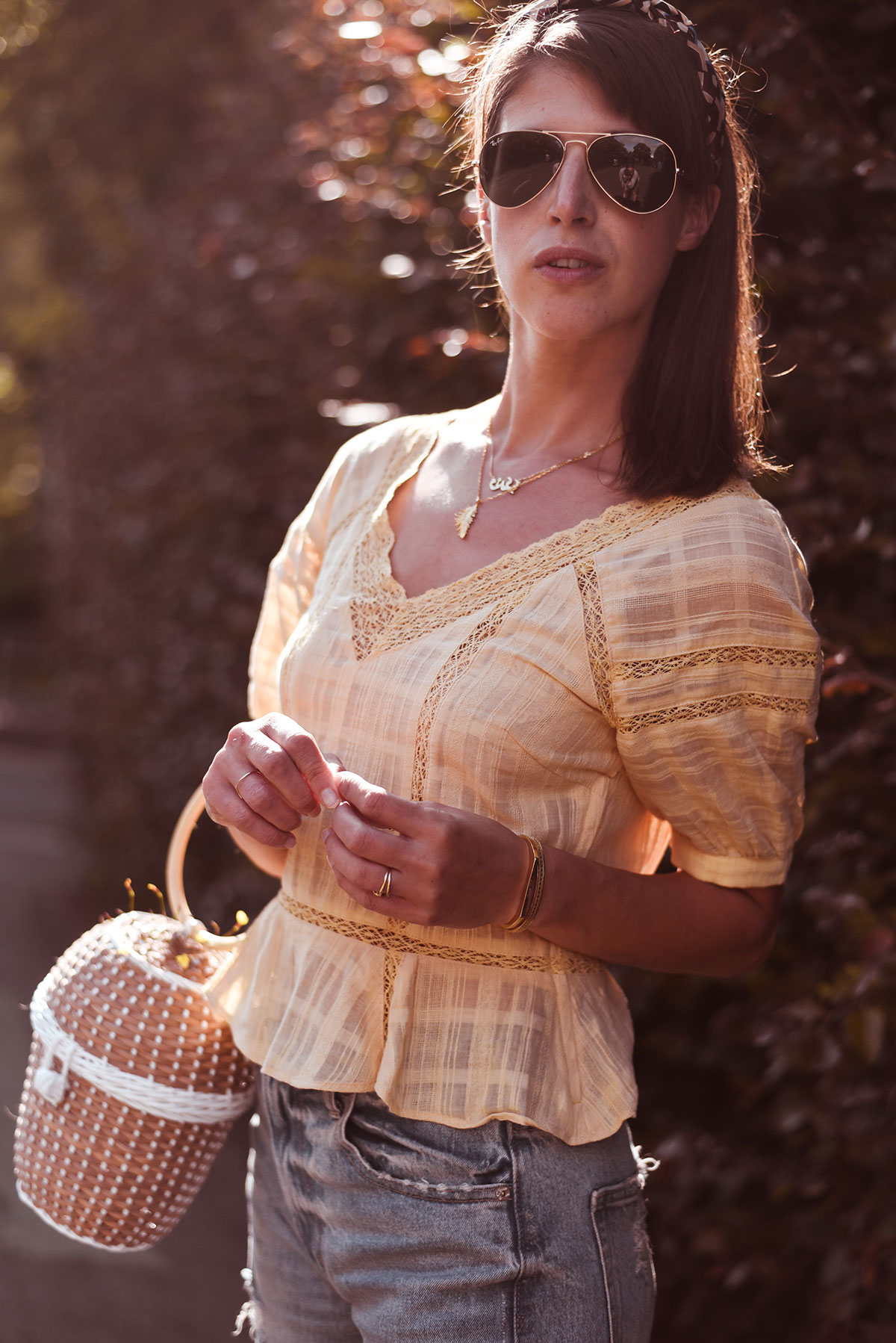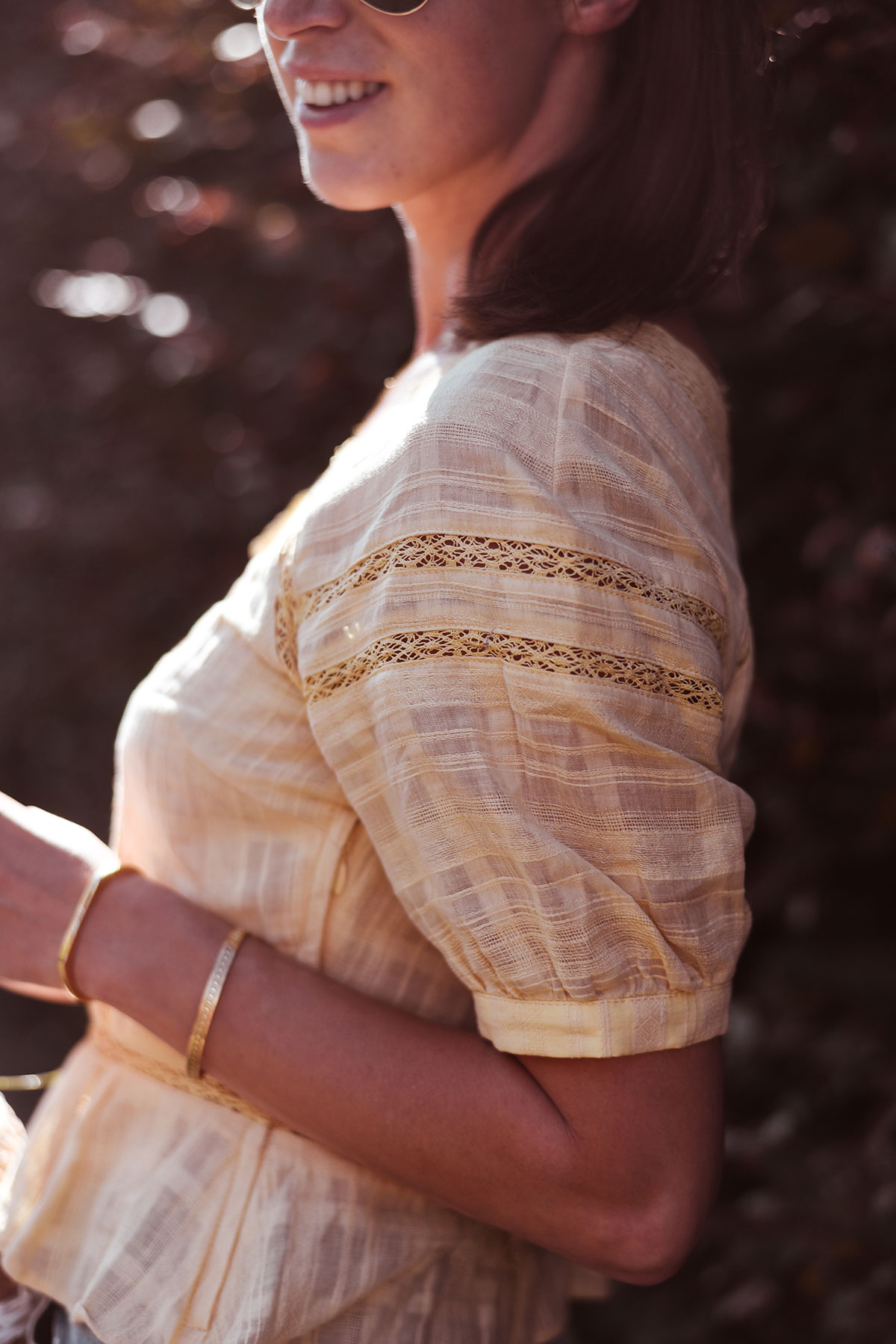 This blouse is pure cotton, the most lovely soft shade of warm lemon, has beautiful puff sleeves, lace detailing and a universally flattering loose peplum shape. And it is £9 in the H&M sale.