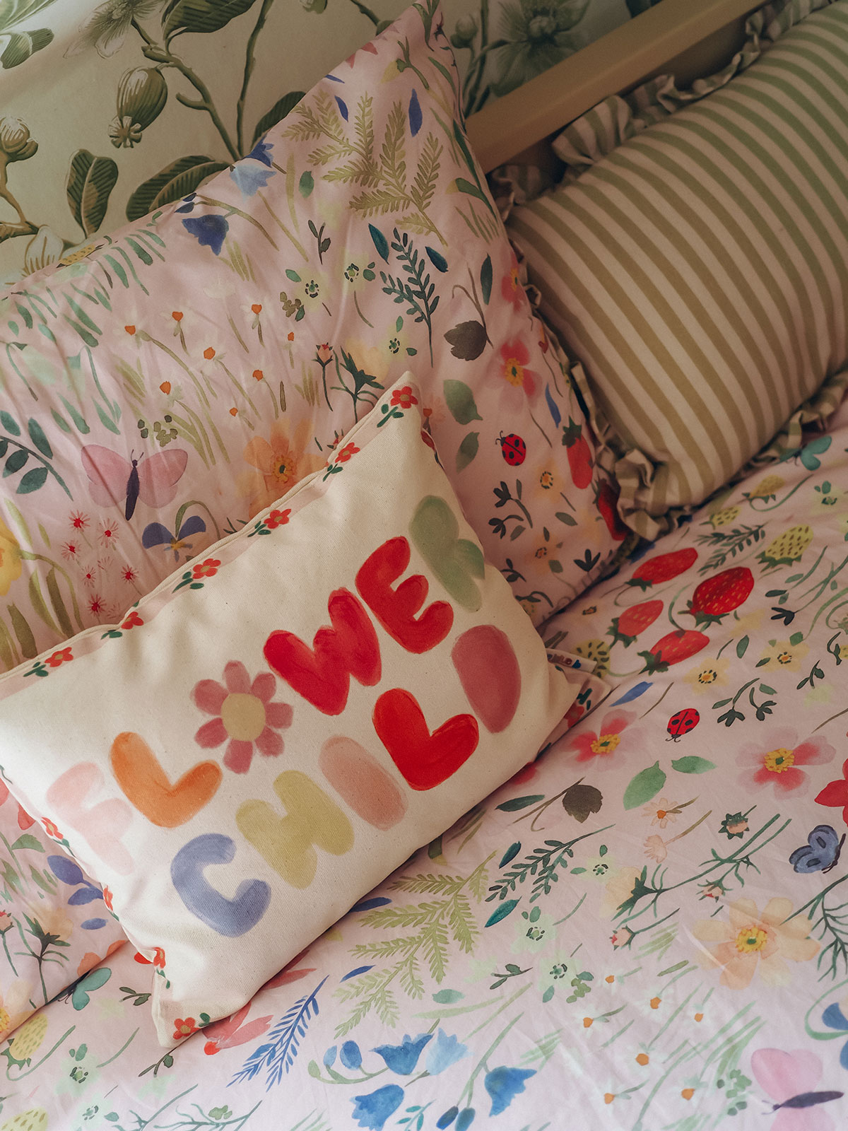 We are both just smitten with the floral bedding by Wee Blue Bell – the most gorgeous new kids’ brand founded by some very good friends (including Fi of Bluebellgray for those of you who have been around long enough to know the connection).