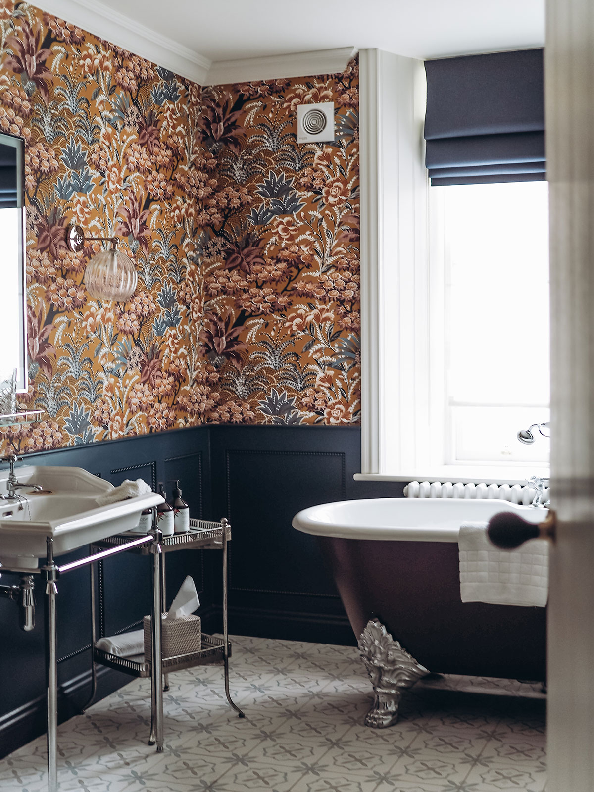 Our Dahlia suite was a TREAT. A home from home complete with living room and breakfasting table plus the most generous of bathrooms and even a separate WC. I urge you to spend a moment really taking in the level of detail here with the pattern layering, the lighting, the hardware, the vintage finds, the paint colours… we talk about these spaces well into the night (I stayed with my gorgeous cousin, not my husband – he would have been fast asleep no sooner than he would have devoured his turndown sugary tablet treat and his head hit the gloriously plump pillow), dissecting what it was that pulled them all together and searching for the exact lampshades online.