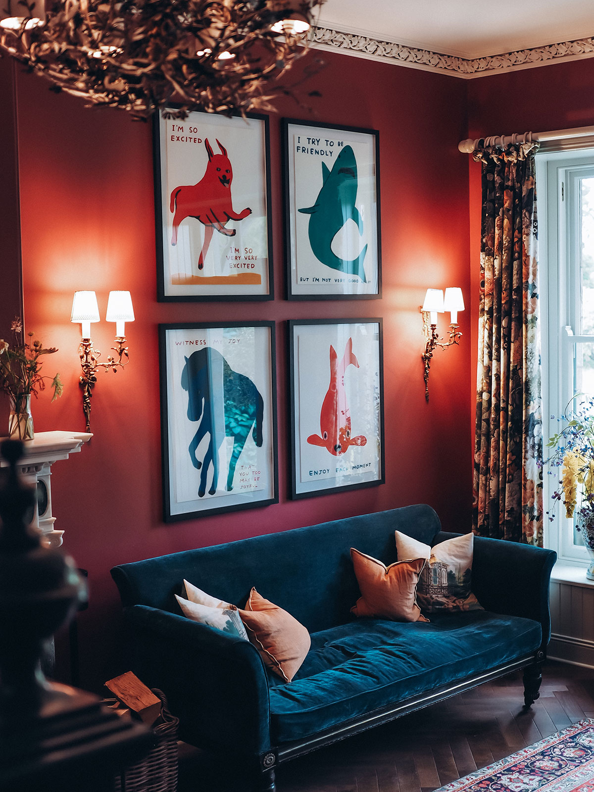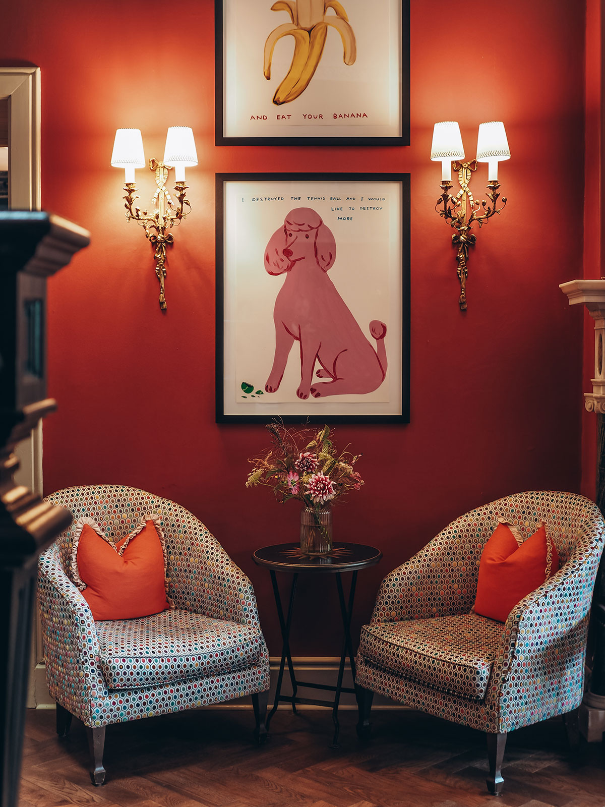 Featuring works from their own personal collection as well as a wealth of pieces on loan from the Royal Scottish Academy, the art here is ever changing, modern, exciting and such an incredible juxtaposition to the decor. We found ourselves descending the grand old stairs flanked by Damien Hirst’s cherry blossoms and sinking into the velvet sofa under the watchful eye of a David Shrigley goldfish. The art here really is a masterclass in blending old with new and the art graduate in me was in awe – an infinitely more gorgeous way to enjoy modern art than in a museum.
