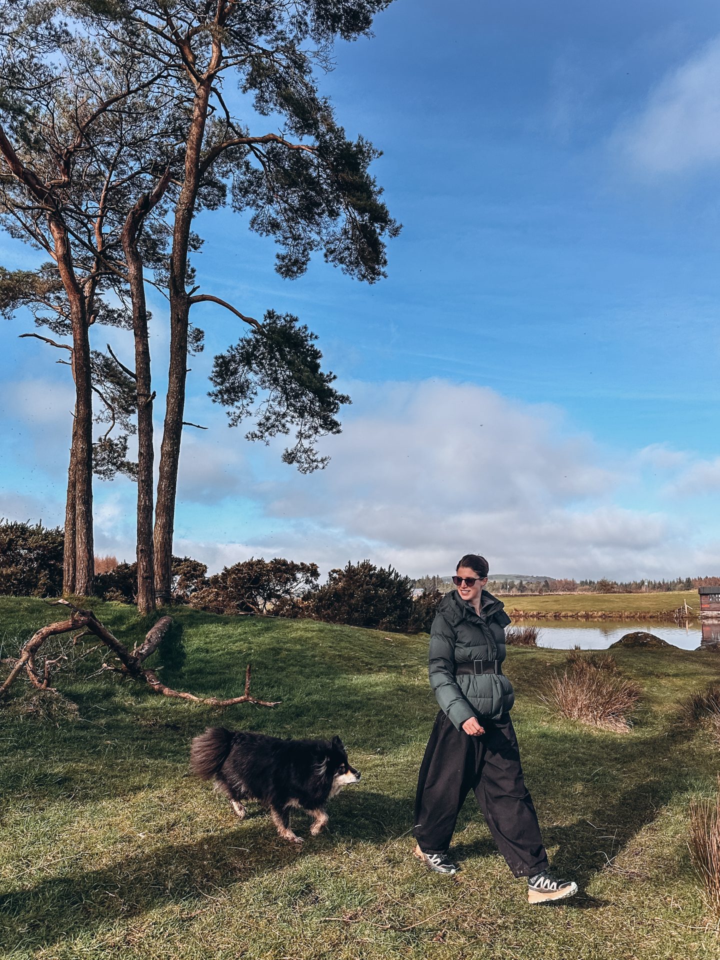 This everyday sports pair have just gone in sale and have added an unexpected element to my dog walks (see below). When it’s extra cold I have been known to wear leggings as an under layer but yesterday the sun shone and they really got their moment. The fabric is that kind of technical vibe with the small squares and, wow, are they comfy. They look great with a ballet wrap top when puffer jacket is not required (got my eye on this wee H&M one).