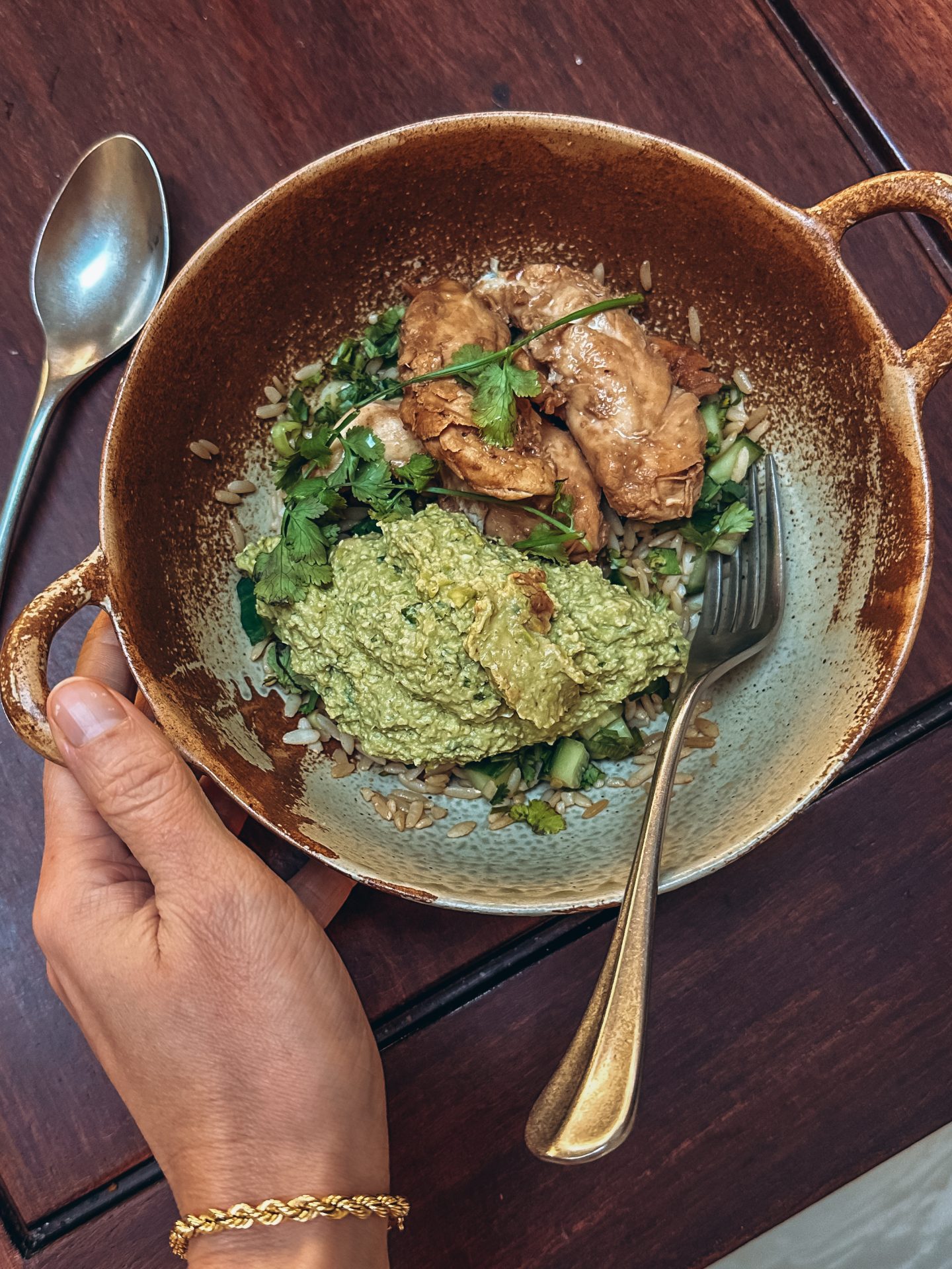 Nothing like the promise of warmer weather to awaken my desire to cook healthy food. I have been making a real effort to up my protein and make more prep ahead lunches for the husband and myself and have unashamedly become Emily English’s biggest fan. I have tried quite a few of her recipes and they are ALL great. Current obsession is the sticky miso chicken bowl with edamame hummus (I sub the tahini for peanut butter FYI).